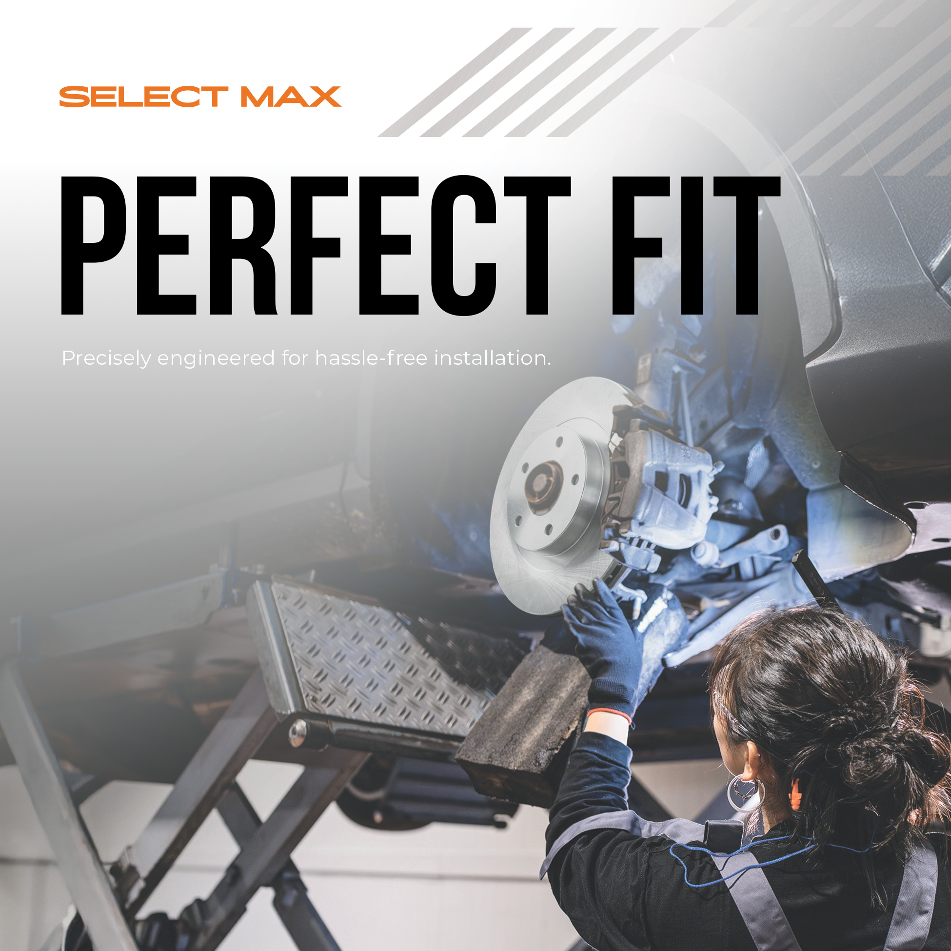 This brake kit includes ValueMax series brake rotors engineered to match OEM specifications, ensuring durability, reliability, and stability. Paired with SelectMax ceramic brake pads w/ hardware, it delivers consistent, noise-free, and low-dust braking.